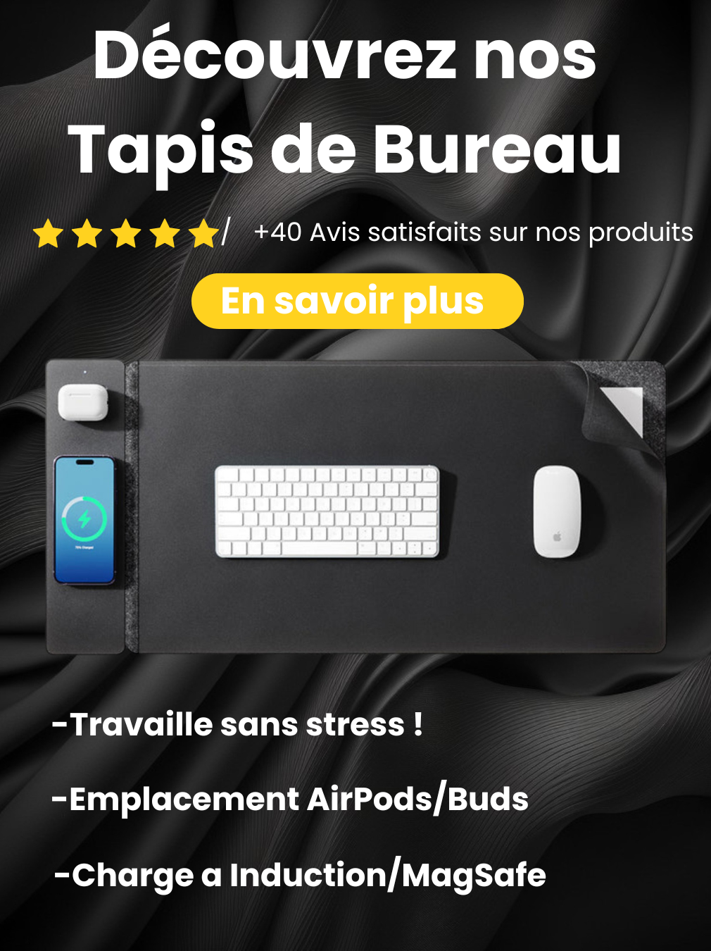Ce sous-main est le complément idéal à mon bureau. Il est élégant, recharge mon téléphone et mes AirPods et m'aide à garder tout bien rangé. De plus, il est deux fois moins cher que les autres que j'ai vus en promotion :-)